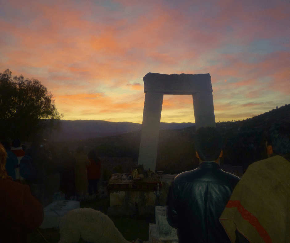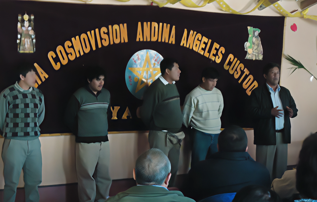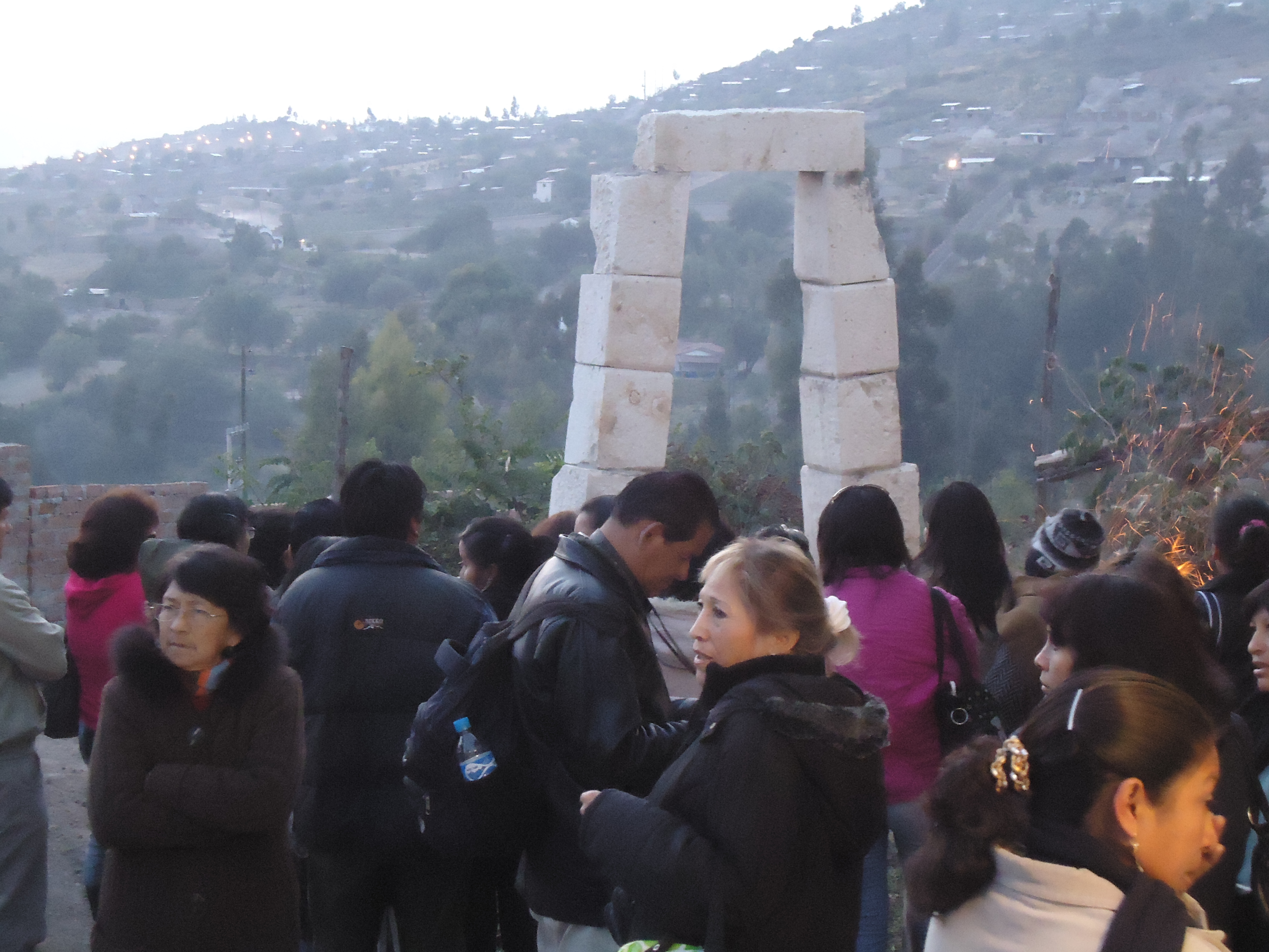 Esta imagen documenta la ceremonia de bienvenida al Año Nuevo Andino, realizada por nuestra asociación el 1 de agosto de 2011. Miembros de la comunidad se congregaron antes del amanecer frente a nuestro portal fundacional en la sede de Ayacucho. El objetivo del encuentro fue observar la salida del sol a través de este umbral de piedra, un acto ceremonial que marca el inicio de un nuevo ciclo agrícola y espiritual. Esta actividad representa la renovación de nuestro compromiso con las tradiciones ancestrales y el agradecimiento a la Pachamama.