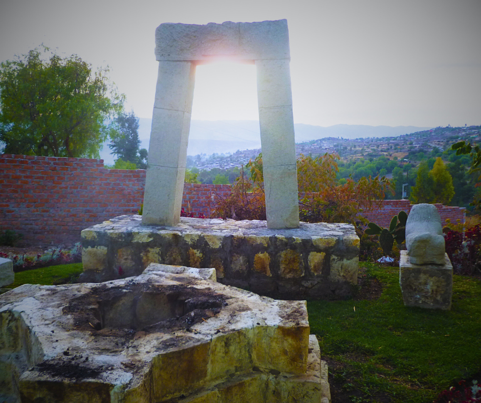 Este es nuestro primer Portal y Chakana, la piedra fundacional de nuestra asociación, erigida en nuestros inicios como la Familia Cosmovisión Andina Ángeles Custodios. El Portal es un umbral sagrado que nos conecta con la energía del cosmos, mientras que la Chakana a sus pies es el corazón de nuestras ceremonias, un altar que resume la totalidad de la cosmovisión andina. Este conjunto es el testimonio en piedra de nuestro origen y la fuente de inspiración que continúa guiando nuestro camino espiritual.